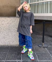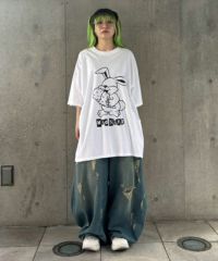 軽やかな厚みの17/-天竺を使用しており着心地も◎ パンキッシュなバニーモチーフのグラフィックにもご注目。 タウンユースはもちろん、レジャーシーンにも最適。 夏のお出かけ・イベントにぴったりな1枚です。 ※ピグメント加工の特性上、着丈や袖丈などに個体差が生じます。
