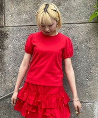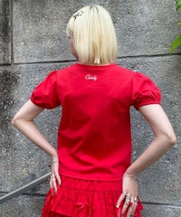 コンパクトなサイジングのTシャツ。 袖はパフスリーブでガーリーなアクセントをプラス。 程よい厚みの20/-天竺素材を使用し軽やかな着心地に。 バックネックに「Candy」ロゴのプリント入り。 トップスとしてはもちろんですが、 キャミソールワンピース等のインナーにも最適です。 ベーシックなデザインで1枚持っておくと便利な万能アイテムです。 ・・・・・・・・・・・・・・・・・・・・・・ ・透け感:なし ・伸縮性:あり ・生地の厚さ:普通 ・裏地:なし ・・・・・・・・・・・・・・・・・・・・・・