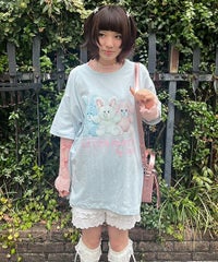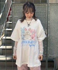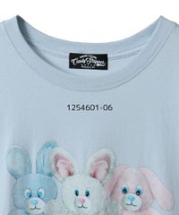 レトロなバニーのぬいぐるみをコラージュしたグラフィックのBIG Tシャツ ●26/-天竺生地を使用したオリジナルボディ ●やわらかいコットン100%の生地を使用し着心地も抜群 ●ヒップラインも隠れる安心感のある丈 ●様々な着こなしに対応できる適度なビッグシルエット ●ユニセックスで着こなしが楽しめるデザイン