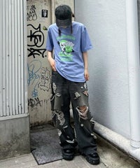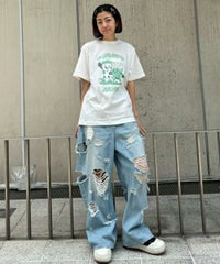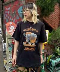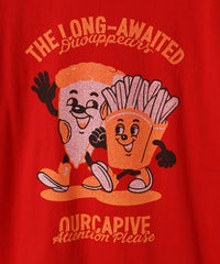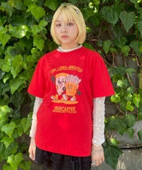アメコミタッチに仕上げたジャンキーなフードモチーフグラフィックのTシャツ ●プリントは掠れた質感にすることでビンテージライクなムードを演出 ●26/-天竺生地を使用したオリジナルボディ ●やわらかいコットン100%の生地を使用し着心地も抜群 ● M~XLとサイズレンジが幅広く、お好みのサイズ感を選んで着用できます ●身体のラインを拾いにくいややオーバーサイズなシルエット ●ユニセックスで着こなしが楽しめるデザイン