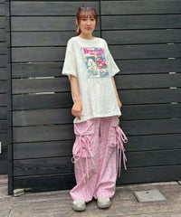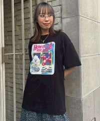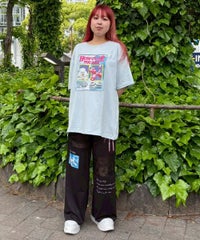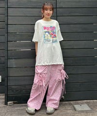 ポップガーリーな世界観をコラージュしたグラフィックのBIG Tシャツ ●26/-天竺生地を使用したオリジナルボディ ●やわらかいコットン100%の生地を使用し着心地も抜群 ●ヒップラインも隠れる安心感のある丈 ●様々な着こなしに対応できる適度なビッグシルエット ●ユニセックスで着こなしが楽しめるデザイン