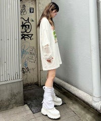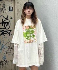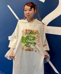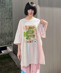 キャット&ぬいぐるみをコラージュしたキュートなグラフィックのBIG BIG Tシャツ ●26/-天竺生地を使用したオリジナルボディ ●やわらかいコットン100%の生地を使用し着心地も抜群 ●ヒップラインも隠れる安心感のある丈 ●ゆったりとルーズに着られるオーバーサイズシルエット ●ユニセックスで着こなしが楽しめるデザイン ●背の低い方が着用した場合、ワンピースとしてもご着用いただけます