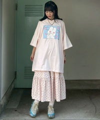 イラストレーターnsn氏が書き下ろした”siroiusagichan”のグラフィックのBIG BIG Tシャツ ●26/-天竺生地を使用したオリジナルボディ ●やわらかいコットン100%の生地を使用し着心地も抜群 ●ヒップラインも隠れる安心感のある丈 ●ゆったりとルーズに着られるオーバーサイズシルエット ●ユニセックスで着こなしが楽しめるデザイン ●背の低い方が着用した場合、ワンピースとしてもご着用いただけます