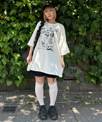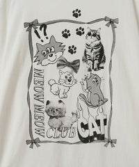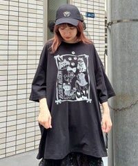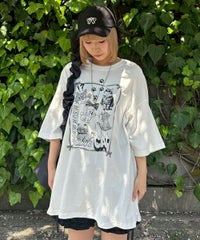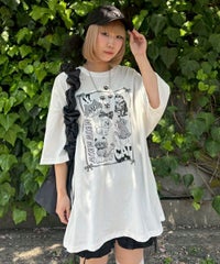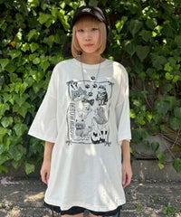 イラストとフォトを交えたCATモチーフのコラージュグラフィックのBIG BIG Tシャツ ●26/-天竺生地を使用したオリジナルボディ ●やわらかいコットン100%の生地を使用し着心地も抜群 ●ヒップラインも隠れる安心感のある丈 ●ゆったりとルーズに着られるオーバーサイズシルエット ●ユニセックスで着こなしが楽しめるデザイン ●背の低い方が着用した場合、ワンピースとしてもご着用いただけます