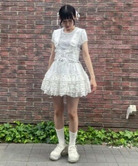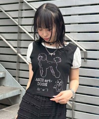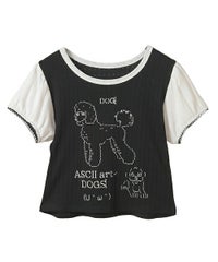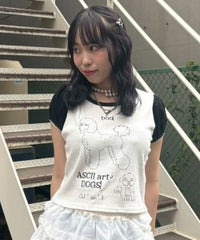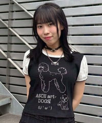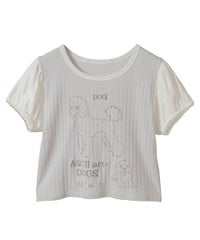 アスキーアート風のワンちゃんがプリントされた、ユニークなチビTシャツです。 コンパクトですがゆとりもある、程よいサイズ感のお作り。 一枚でのご着用はもちろん、キャミワンピースやビスチェのインナーとしても使える、万能アイテムです。 お袖部分はパフスリーブデザインで、優しく二の腕をカバーしてくれます。 あえて肌着のようなアイレット生地を使用しており、ガーリーな雰囲気も楽しんでいただける一着です。 ・・・・・・・・・・・・・・・・・・・・・・ ・透け感:ややあり ・伸縮性:あり ・生地の厚さ:普通 ・裏地:なし ・・・・・・・・・・・・・・・・・・・・・・