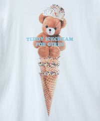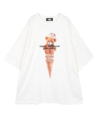 ◯アイスクリームになった?!テディベアがキュートなBIG BIG Tシャツ ◯ロゴ部分はキラキラしたグリッタープリント ◯26/-天竺生地を使用したオリジナルボディ ◯やわらかいコットン100%の生地を使用し着心地も抜群 ◯ヒップラインも隠れる安心感のある丈 ◯ゆったりとルーズに着られるオーバーサイズシルエット ◯ユニセックスで着こなしが楽しめるデザイン ◯背の低い方が着用した場合、ワンピースとしてもご着用いただけます