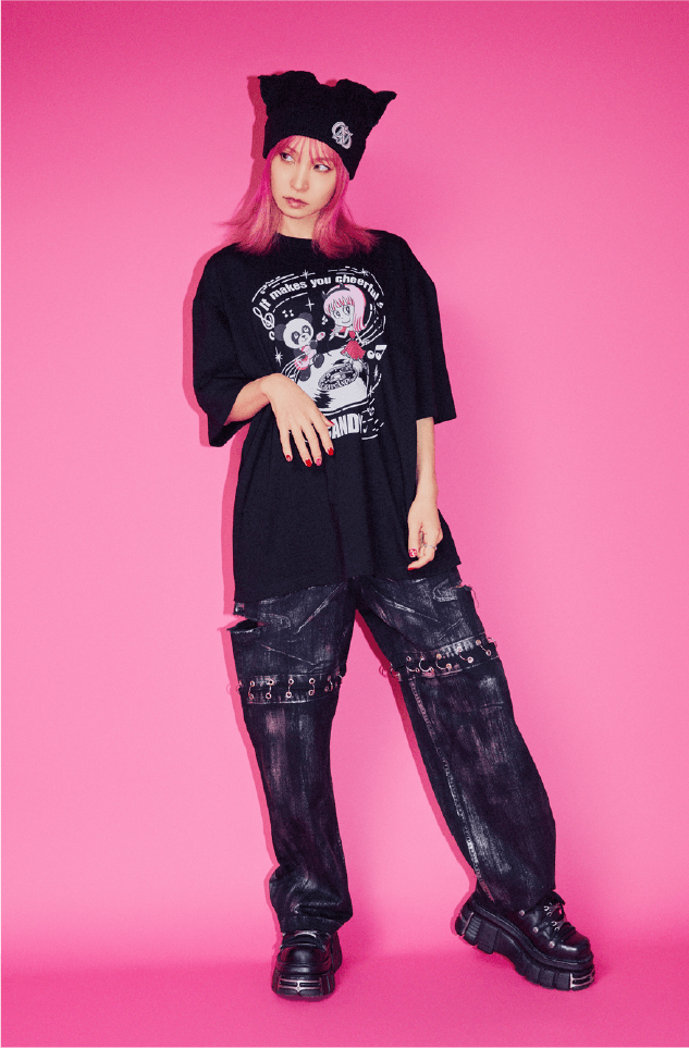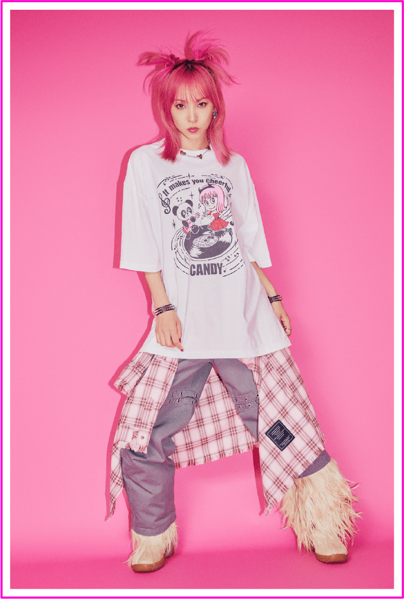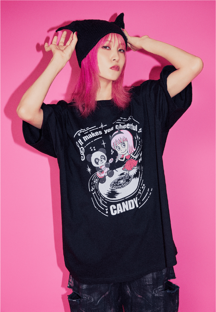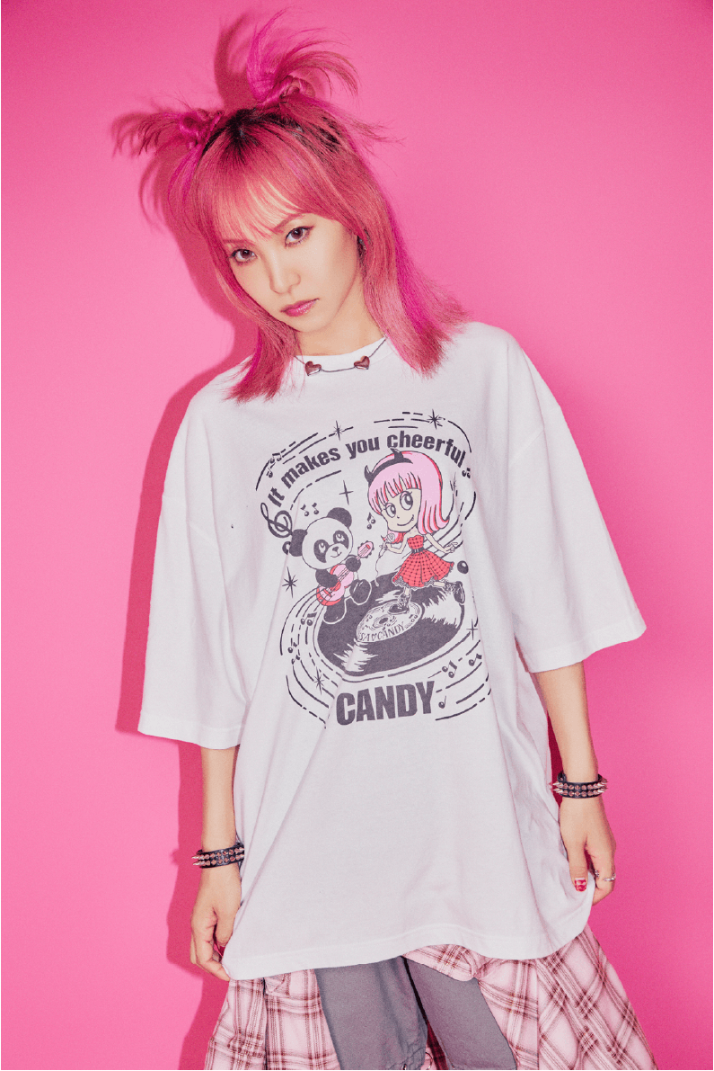 - 「ひとまず、やっと世界が開けた感じがしているので、今、久しぶりにアジアツアーに行ってます。待っていてくれた国、地域の人たちのところには会いに行きたいなという気持ちではいますね。そして、秋のアリーナツアーは、<COCKTAiL PARTY>というタイトルなので、コラボアイテムをぜひ着てきていただきたいです。今回、長袖もあるから、時期的にも最高なはずです! あと、キャンディは基本的に女性の方が着る洋服だと思うんですけど、私はずっと、男の子にも着てもらいたいと思っていて。私のファンの方は男性もすごく多いので、私がすごく大好きなキャンディのお洋服をみんなに着てもらいたいという思いで大きなサイズのものを作ってもらっているので、ぜひこの機会に男性にも着てほしいです」