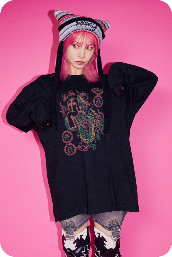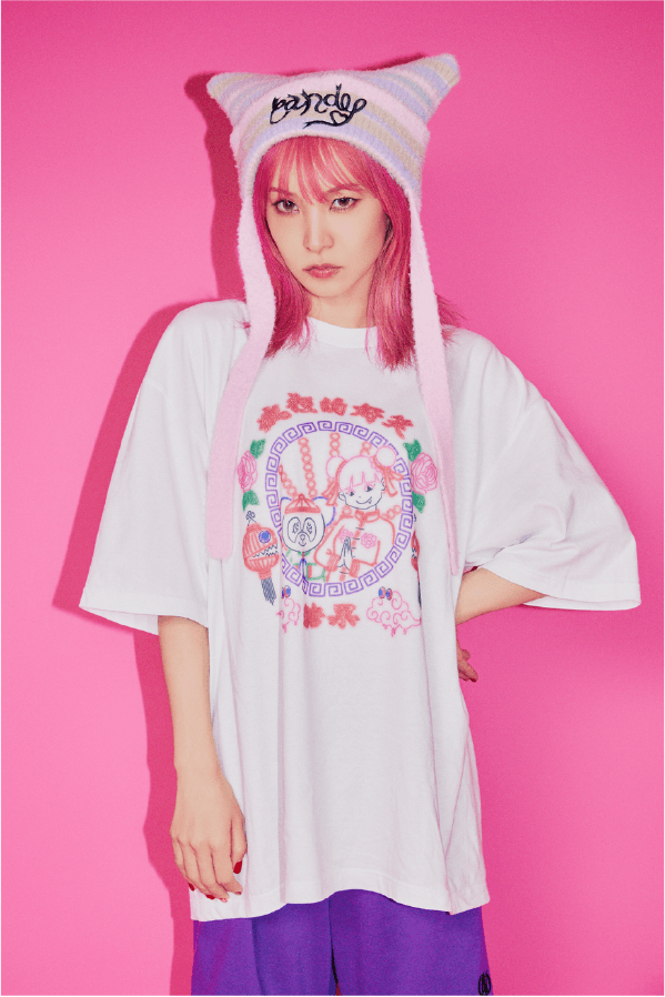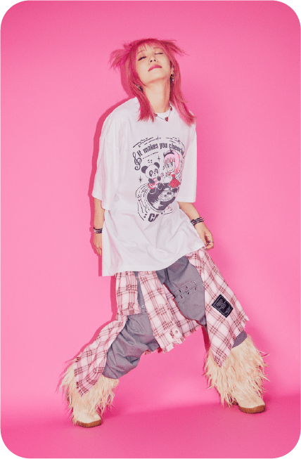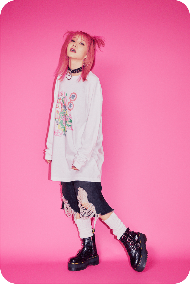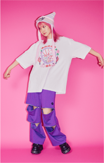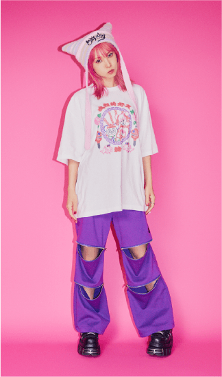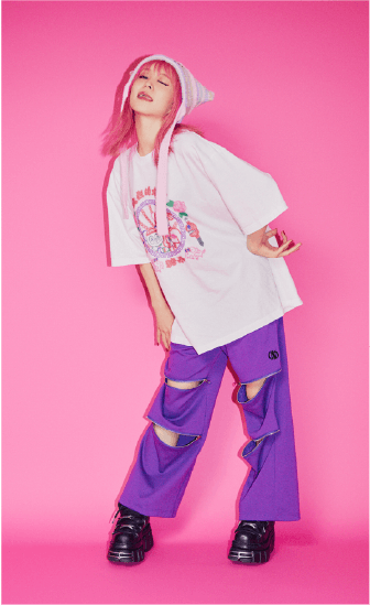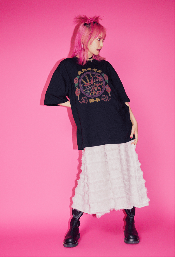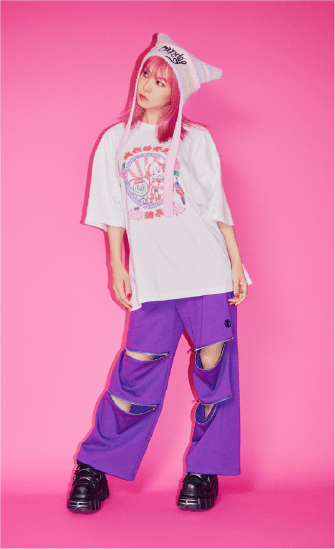 - 「ひとまず、やっと世界が開けた感じがしているので、今、久しぶりにアジアツアーに行ってます。待っていてくれた国、地域の人たちのところには会いに行きたいなという気持ちではいますね。そして、秋のアリーナツアーは、<COCKTAiL PARTY>というタイトルなので、コラボアイテムをぜひ着てきていただきたいです。今回、長袖もあるから、時期的にも最高なはずです! あと、キャンディは基本的に女性の方が着る洋服だと思うんですけど、私はずっと、男の子にも着てもらいたいと思っていて。私のファンの方は男性もすごく多いので、私がすごく大好きなキャンディのお洋服をみんなに着てもらいたいという思いで大きなサイズのものを作ってもらっているので、ぜひこの機会に男性にも着てほしいです」