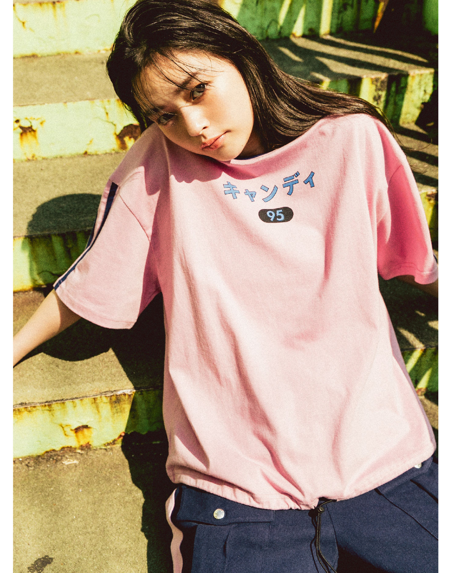 縁取られたキャンディロゴに視線集中間違いなし! 裾はシャーリング付きなので、ボトムや気分に合わせてアレンジ可能。袖に入った2本ラインがスポーツ感もMIXしてくれちゃう。