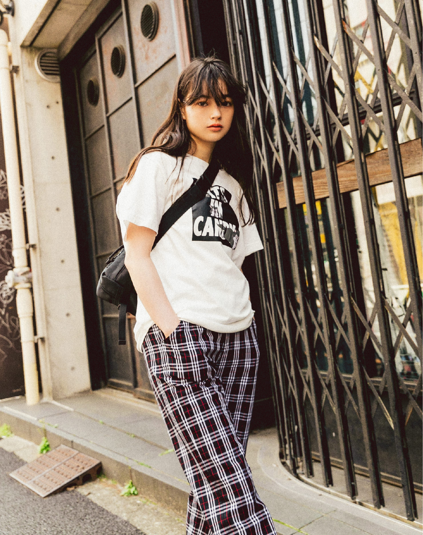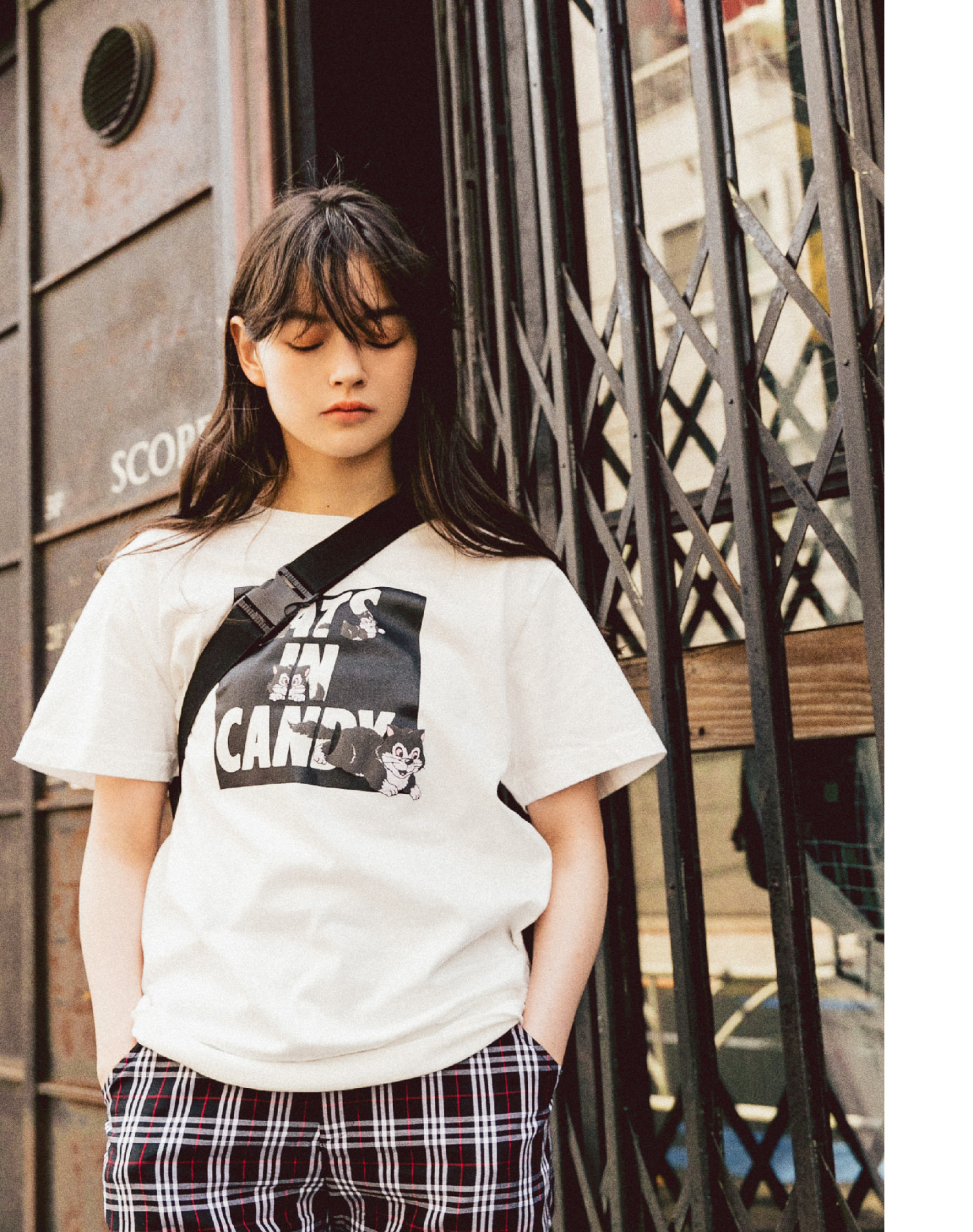 メンズっぽさの強いポケットTは今シーズンの注目株。クールなフォントのロゴ刺しゅうコーデにメリハリをプラスしてくれます。バックスタイルの生意気そうなネコのプリントも◎!
