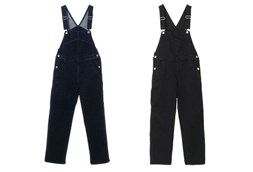 タイトなシルエットのデニムサロペット。