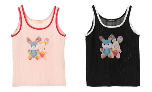 クレイジーカラーのファニーなぬいぐるみが可愛いコットンキャミソール。
