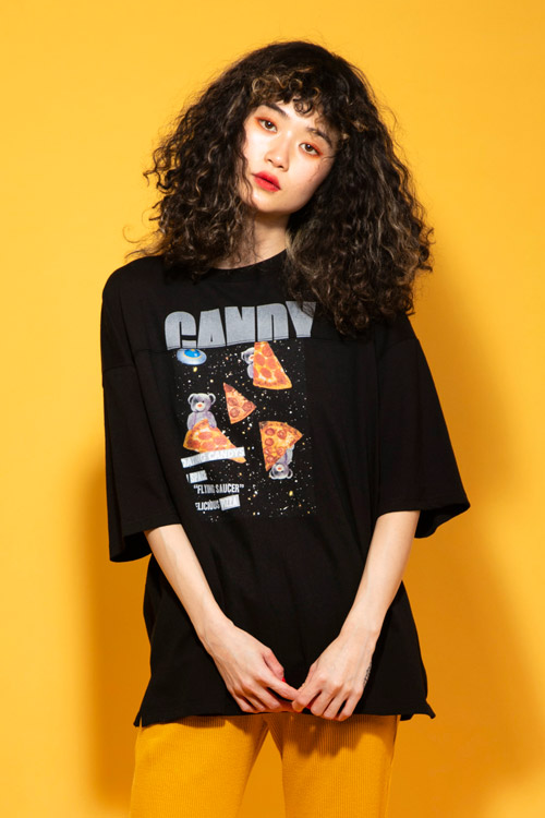 ピザに乗ったテディベアのグラフィックと