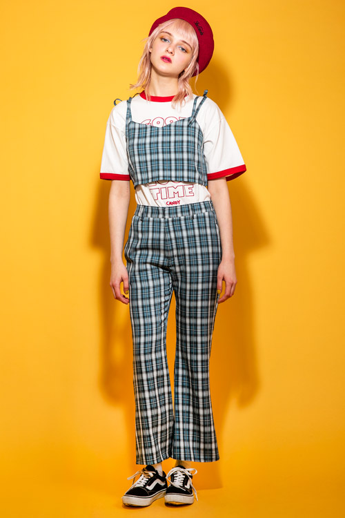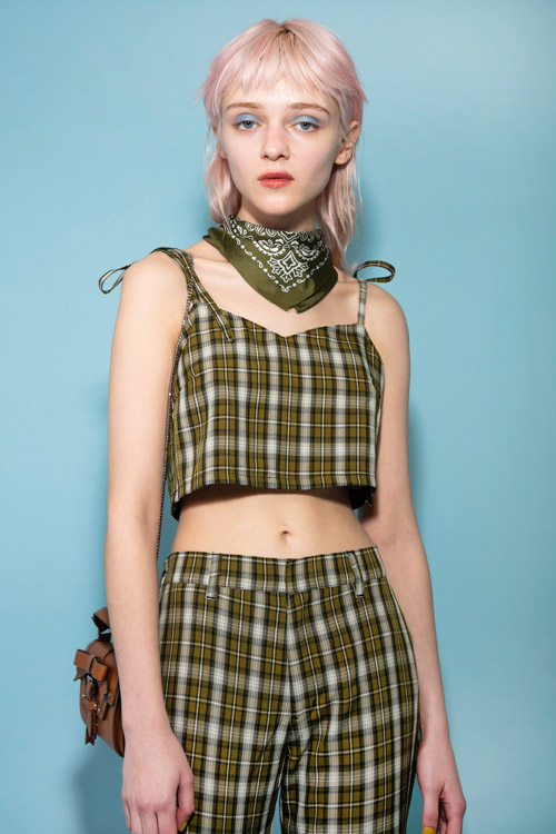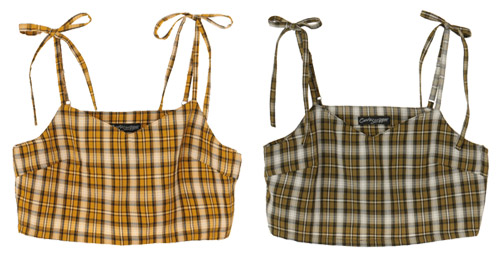 チェック素材のビスチェ。肩紐にアジャスターがついており調節可能。