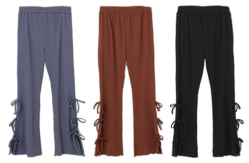 サイドにリボンをあしらい、可愛らしく仕上げたパンツ。