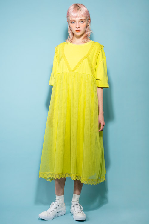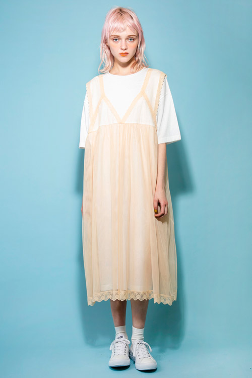 エプロン風のチュールワンピースをレイヤードしたような、