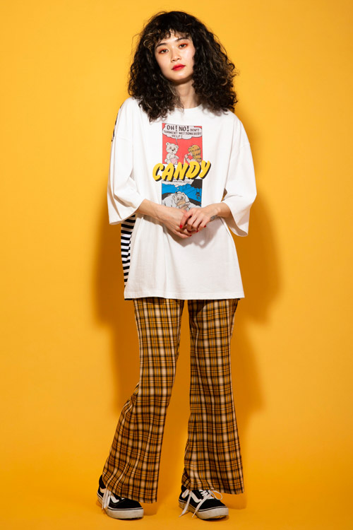 ロゴを切り替えたリメイク風Tシャツ。
