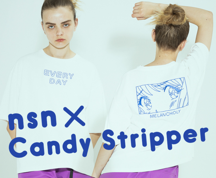 2020.5.22 【nsn×Candy Stripper】 イラストレーターnsn氏が描いた、少女漫画風のイラストを刺繍で表現したトップス。 フロント部分の手書きロゴも刺繍で施されており、他とは一味違う一着。 MELANCHOLY TEE ¥12,000+tax