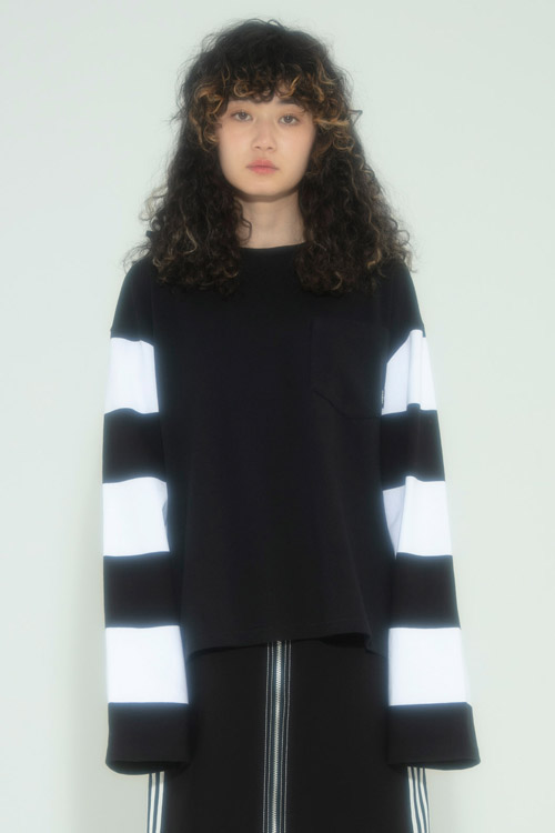 袖のワイドボーダーがカジュアルな印象に。
