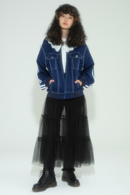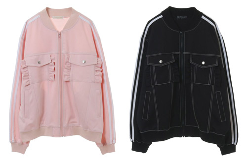 ポケットに施したフリルが可愛いジャージブルゾン。
