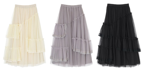 ボリュームたっぷりのチュールスカート。