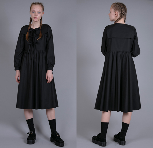 スクエアカットのセーラーカラーが特徴のガーリーなワンピース。