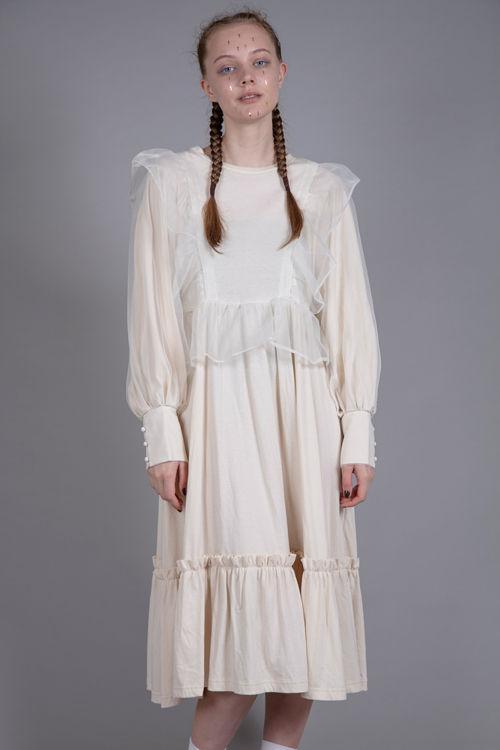 ワンピースにオーガンジー素材の