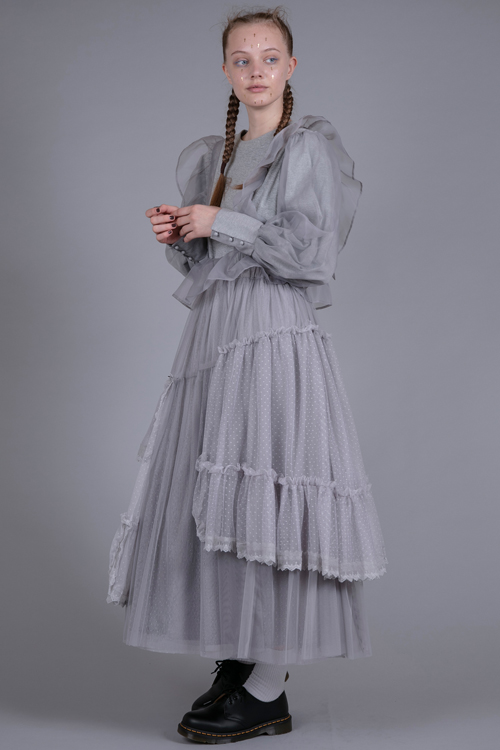 水玉チュールであしらったランダムフリルがアクセントに。
