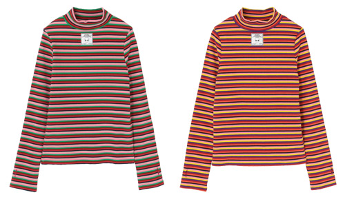 マルチボーダー柄のトップス。