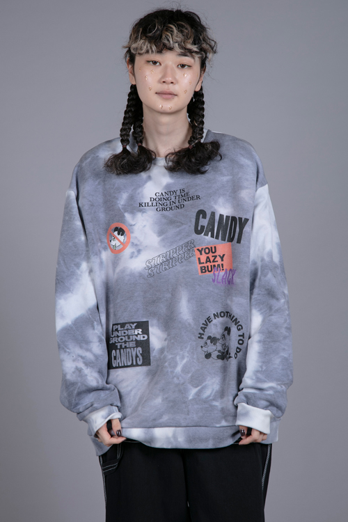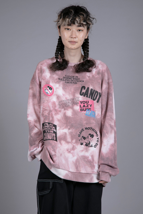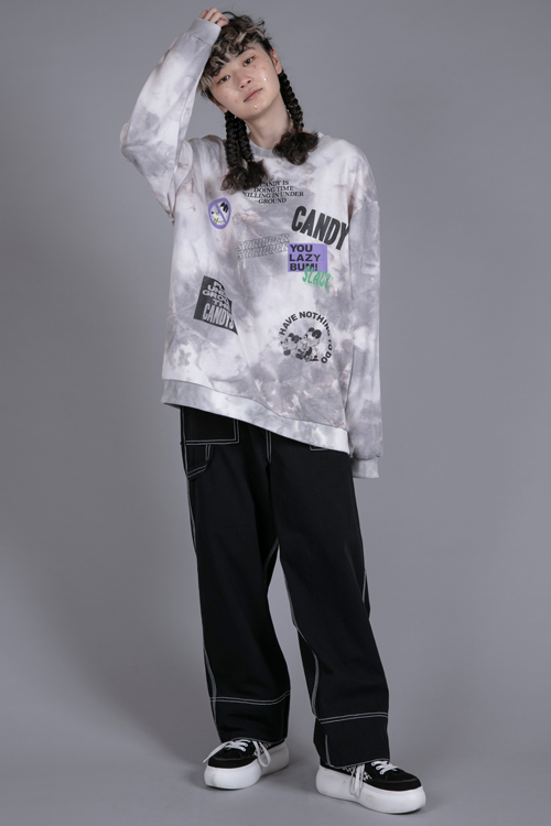タイダイ染めがプリントされた、トレンド感あるスウェットトップス。