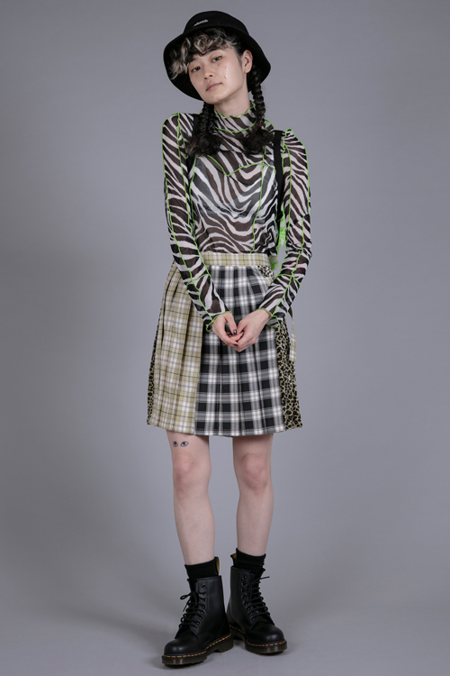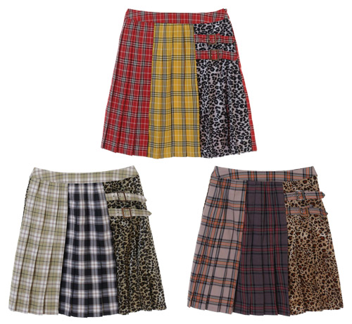 3種類をMIXさせたプリーツミニスカート。