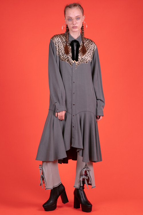ヨーク部分をヒョウ柄生地で切り替えた