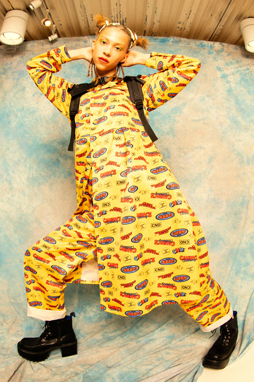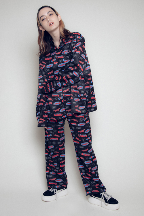 90’sの雰囲気漂うオリジナル総柄に目を惹かれるパンツ。