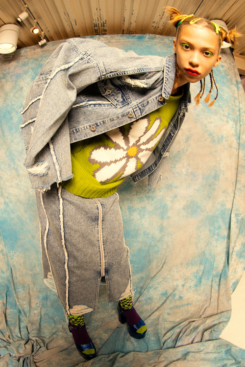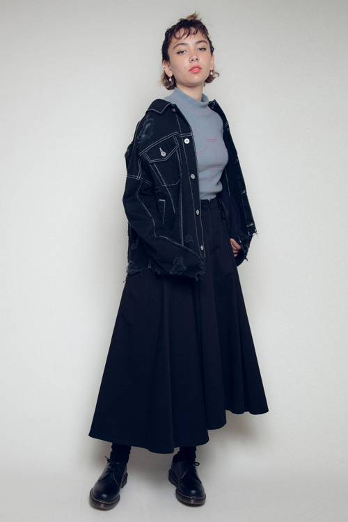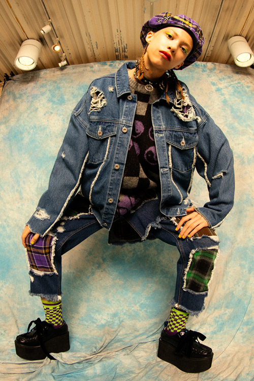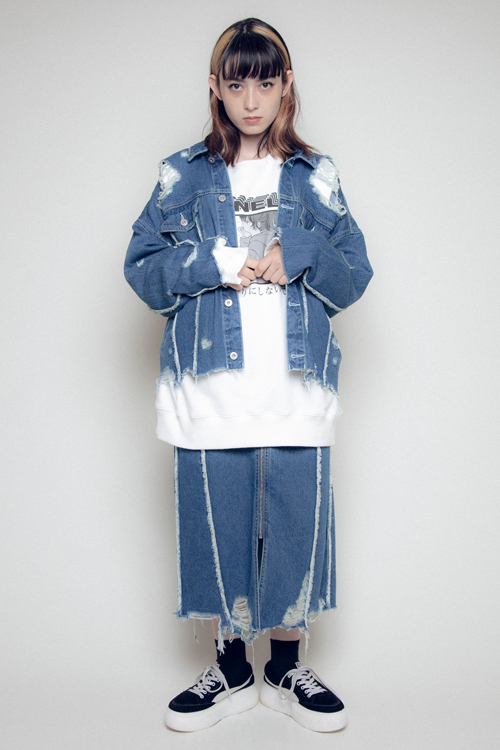 随所に配した穴あきやダメージ加工が特徴で、