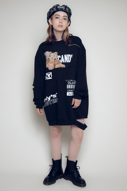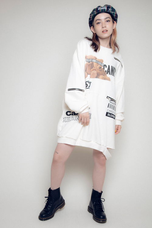 切り替え部分にはステッチを施した、リメイク風スウェットワンピース。