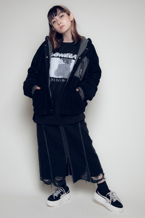 ジップ使いや裾の外れたリブがアクセントに。