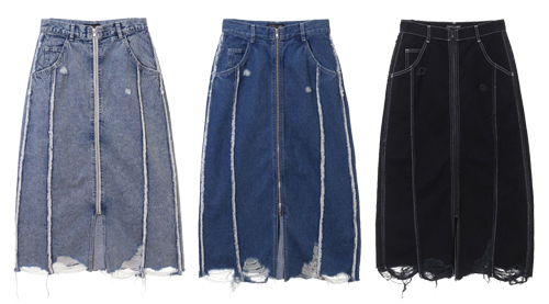 裾切りっぱなしデザインのロングスカート。