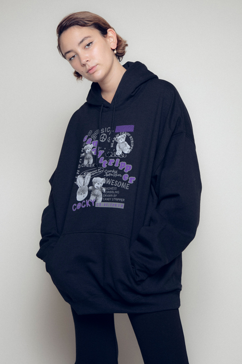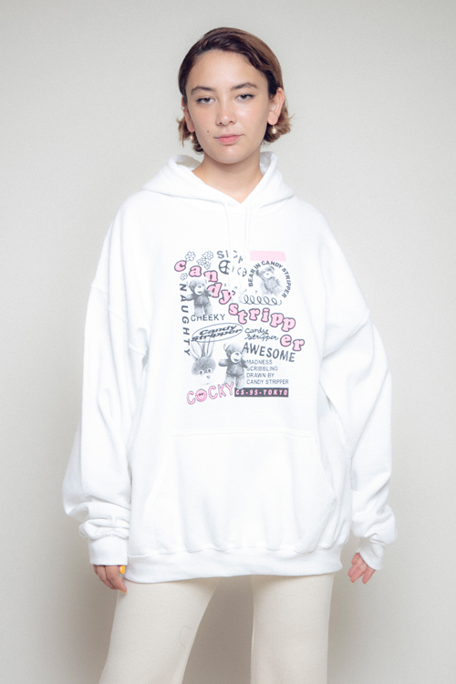 ぎゅっと詰め込んだグラフィックが可愛いスウェットフーディ。