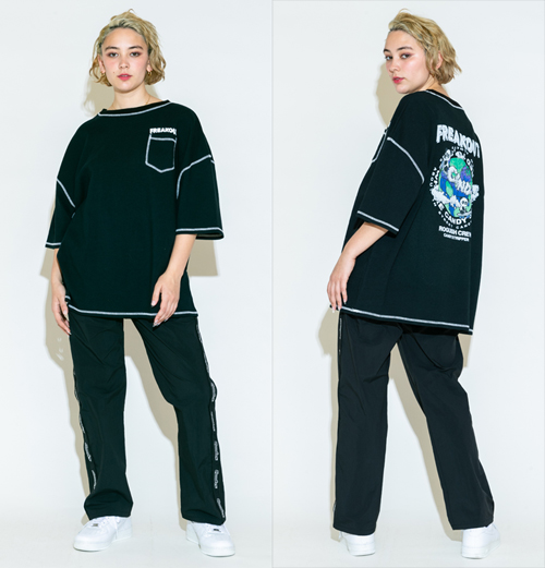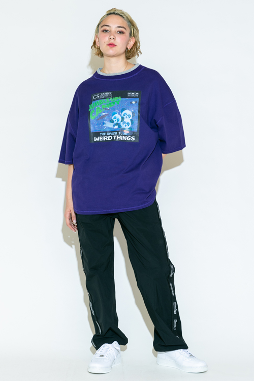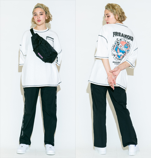 毒のあるコラージュプリントが魅力のTシャツ。