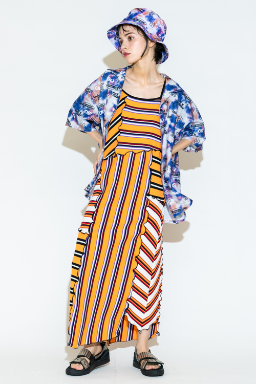 ボーダーテレコをランダムに切り替えたキャミワンピース。