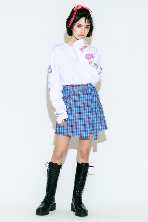 ライダースディテールのミニ巻きスカート。