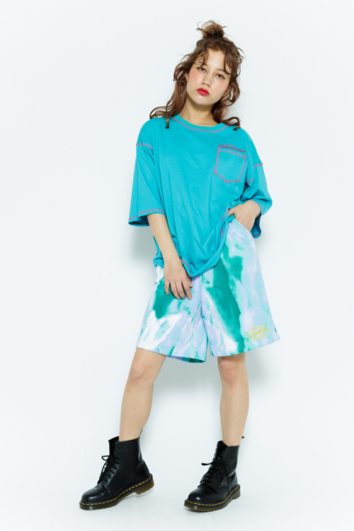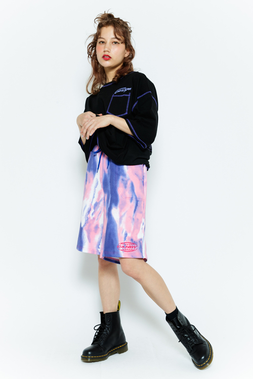 タイダイ柄の裏毛を使用したハーフパンツ。