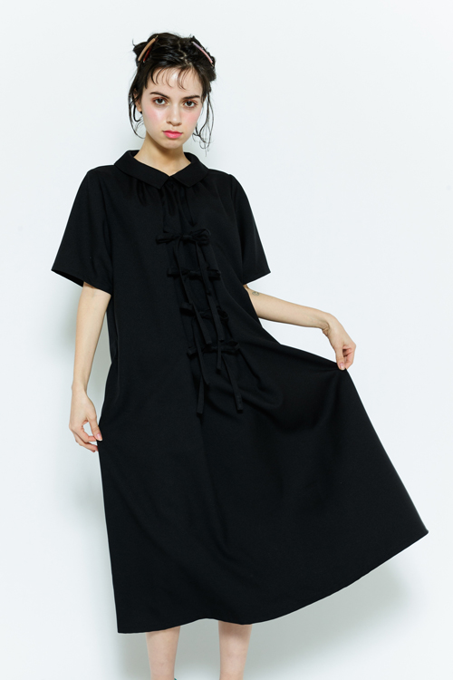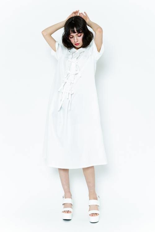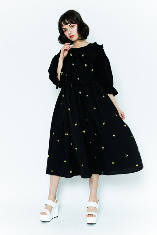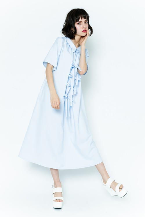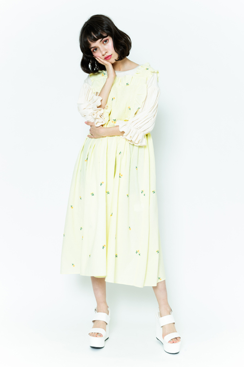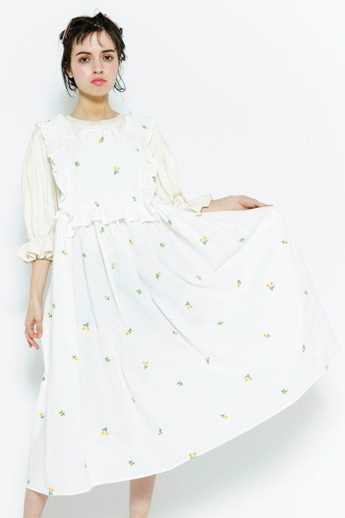 スカラップ刺繍の襟が特徴的なモードな甘さが漂うワンピース。