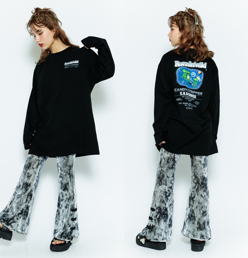宇宙に浮かぶエイリアンのグラフィックがユニークなロンT。