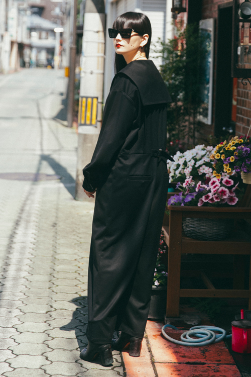 セーラーカラーが特徴のゆったりしたシルエットのサロペット。