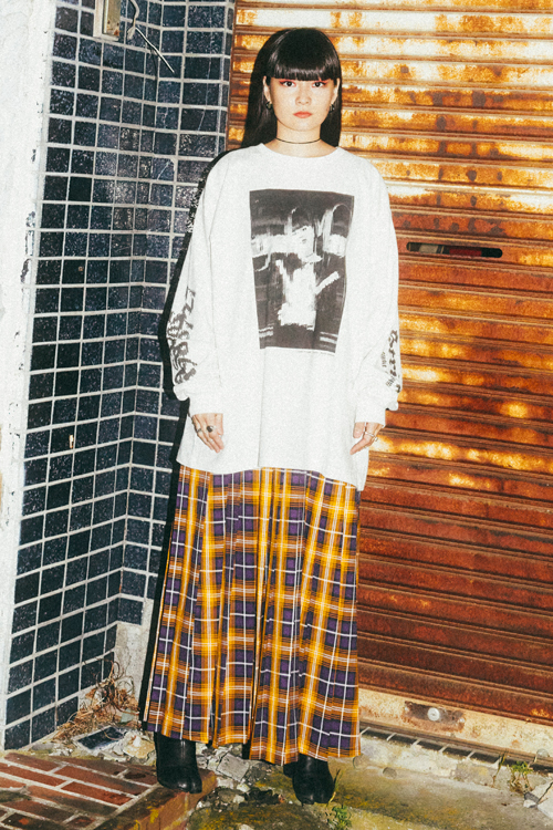写真をコラージュしたユニセックスなシルエットのロンT。