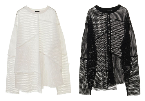2種類のメッシュ素材をランダムに切り替えたトップス。