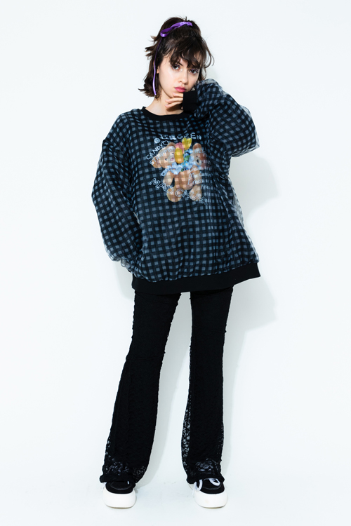 スウェットにシアーなオーガンジーを