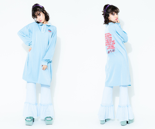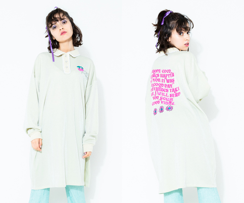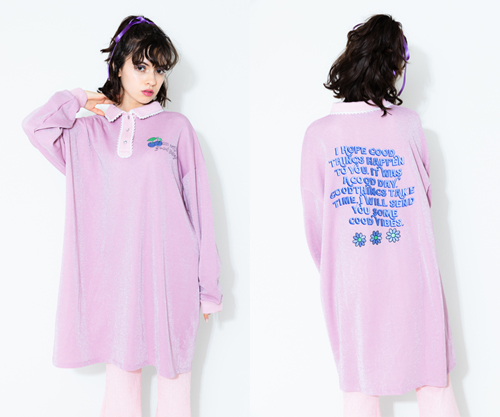 ラメのカットソー素材を使用したガーリーなポロワンピース。