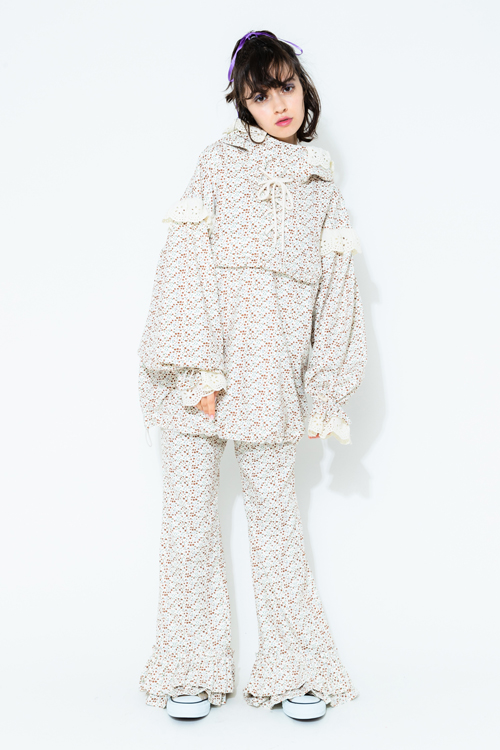 起毛感のある小花柄の生地を使用したガーリーなアノラック。